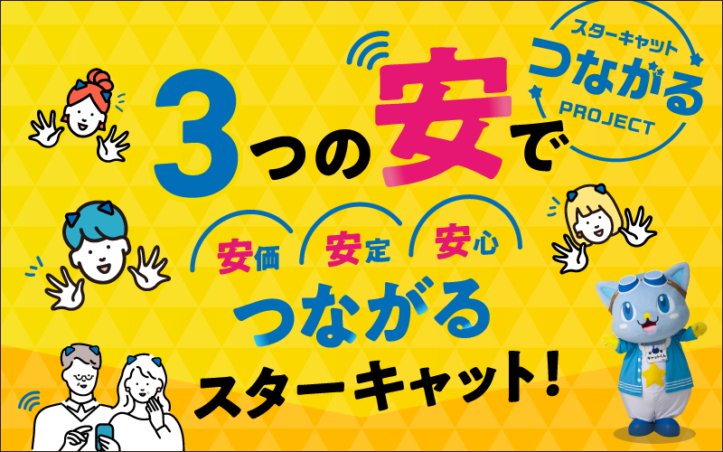 スターキャットつながるPROJECT 「安価」「安定」「安心」3つの「安」でつながるキャンペーン - 選べる月額880円コースと最大14万円もらえるキャッシュバックコース